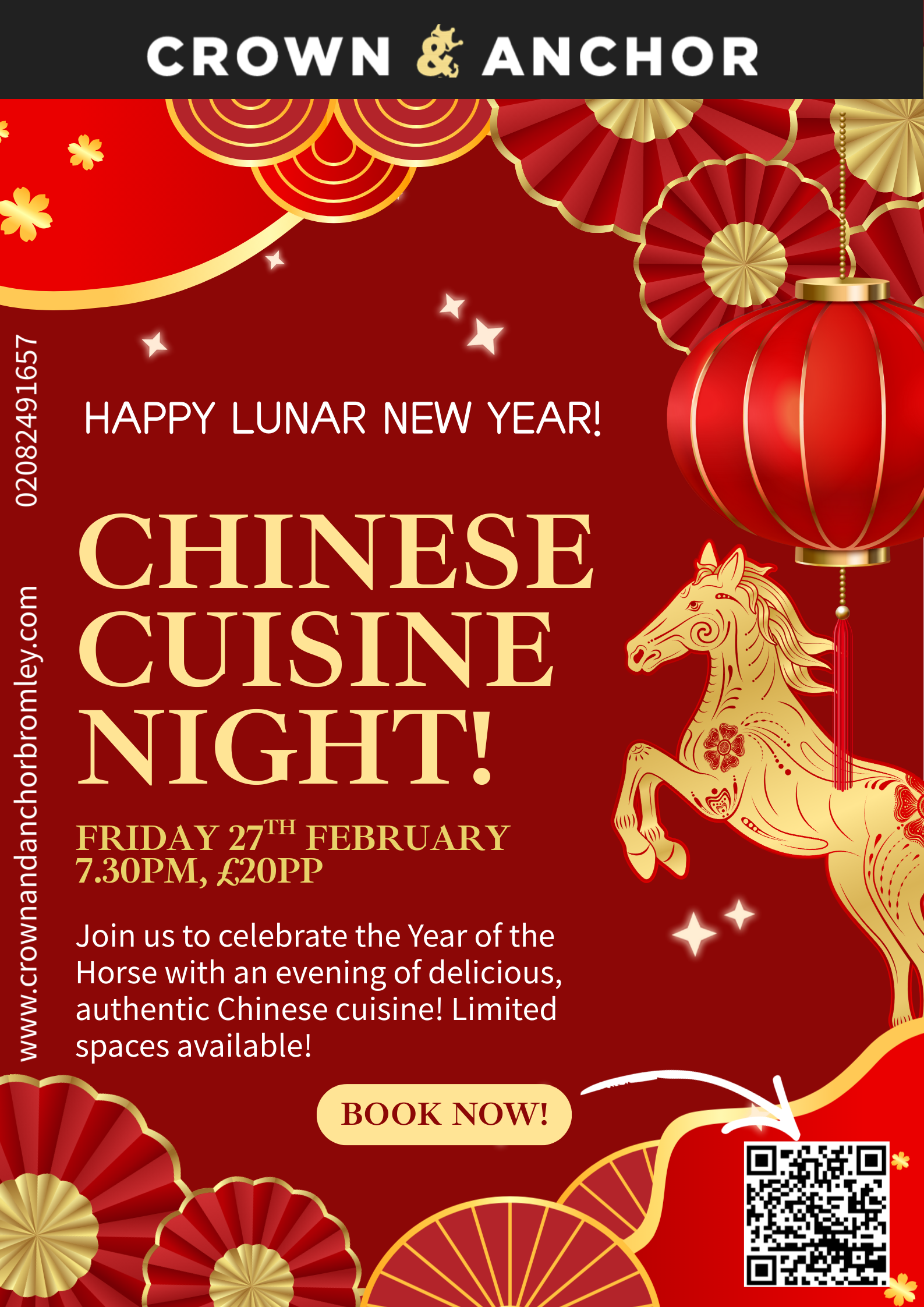 £20 per headJoin us as we proudly host our very first Chinese cuisine night to celebrate the Lunar New Year, choosing from your favourite traditional dishes and enjoying an abundant feast to welcome the year ahead! Book quickly - limited availability!