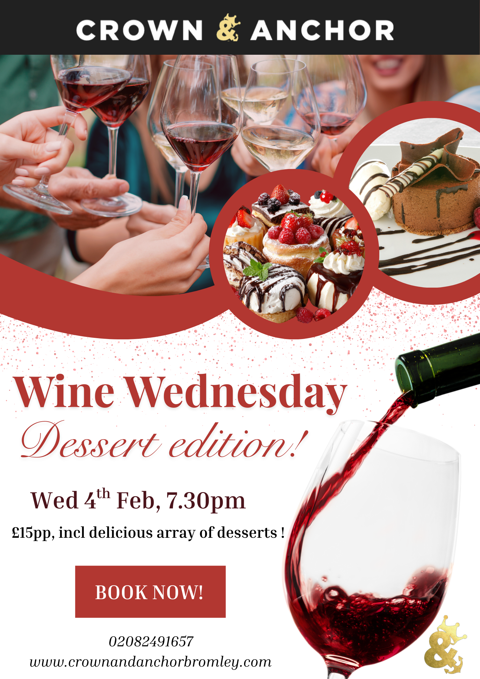 £15ppAn indulgent evening of wine tasting, dessert edition, featuring rich, sweet wines and deliciously paired desserts