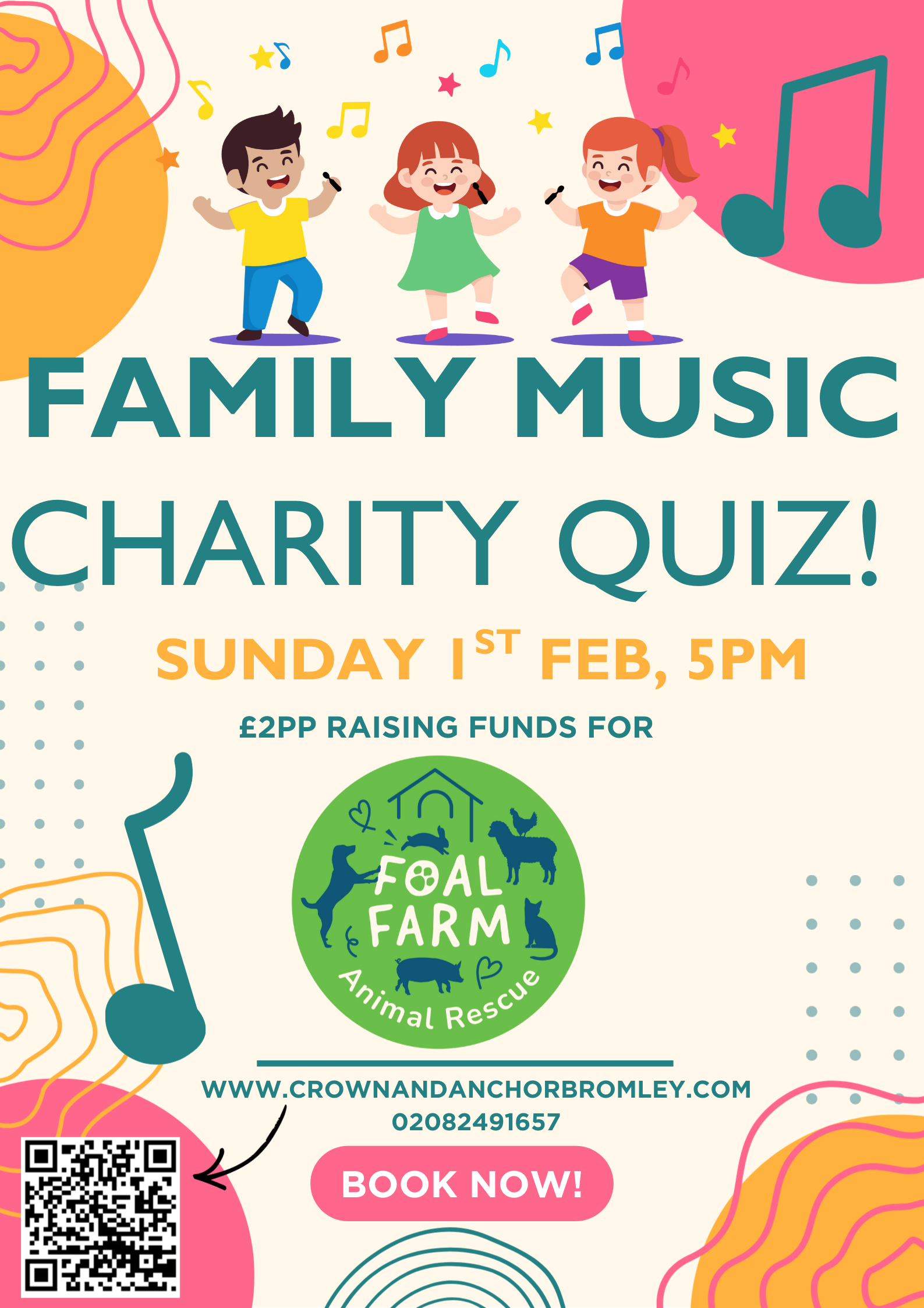 £2ppCome along to our family-friendly music quiz for a great evening of fun, laughter, and music, all in support of Foal Farm Animal Charity!
