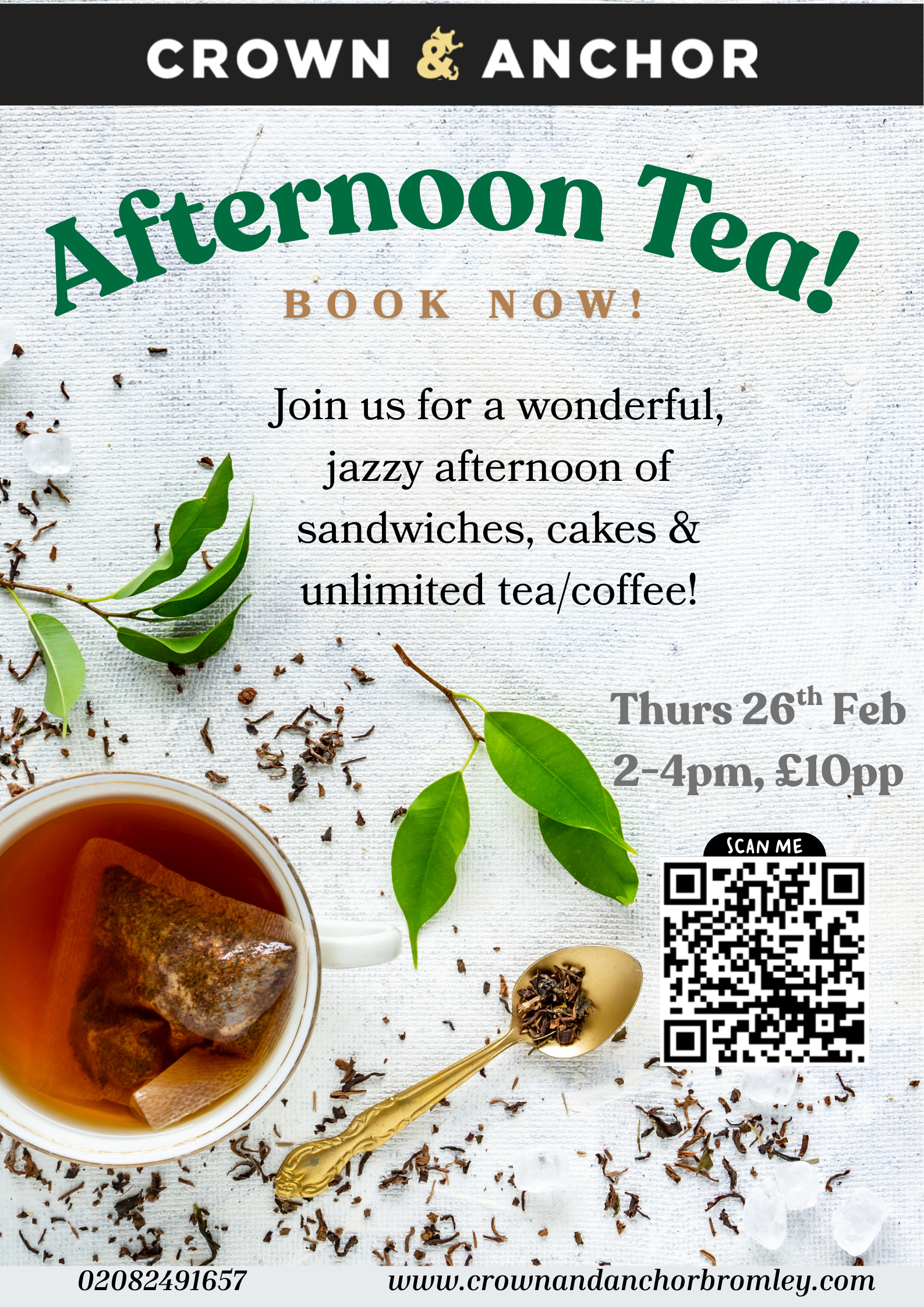 £10ppRelax with an elegant afternoon tea accompanied by smooth jazz on the stereo, featuring a delicious selection of cakes, sandwiches, and unlimited hot drinks.”