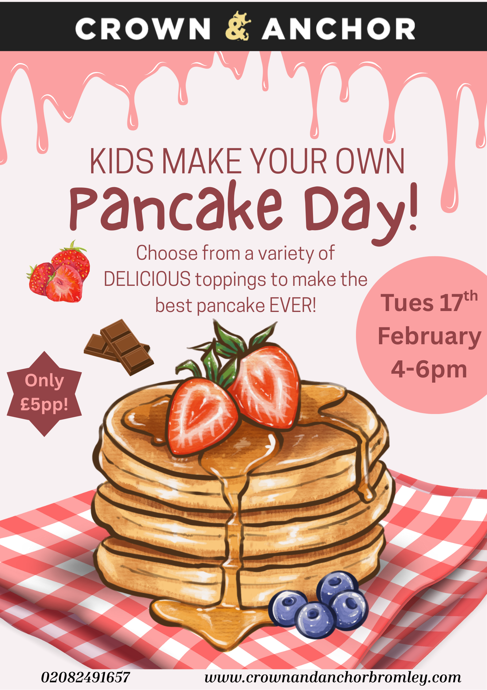 £5ppA stack of fun for little chefs — kids make and decorate their own pancakes with all their favourite toppings, while parents relax with a drink!