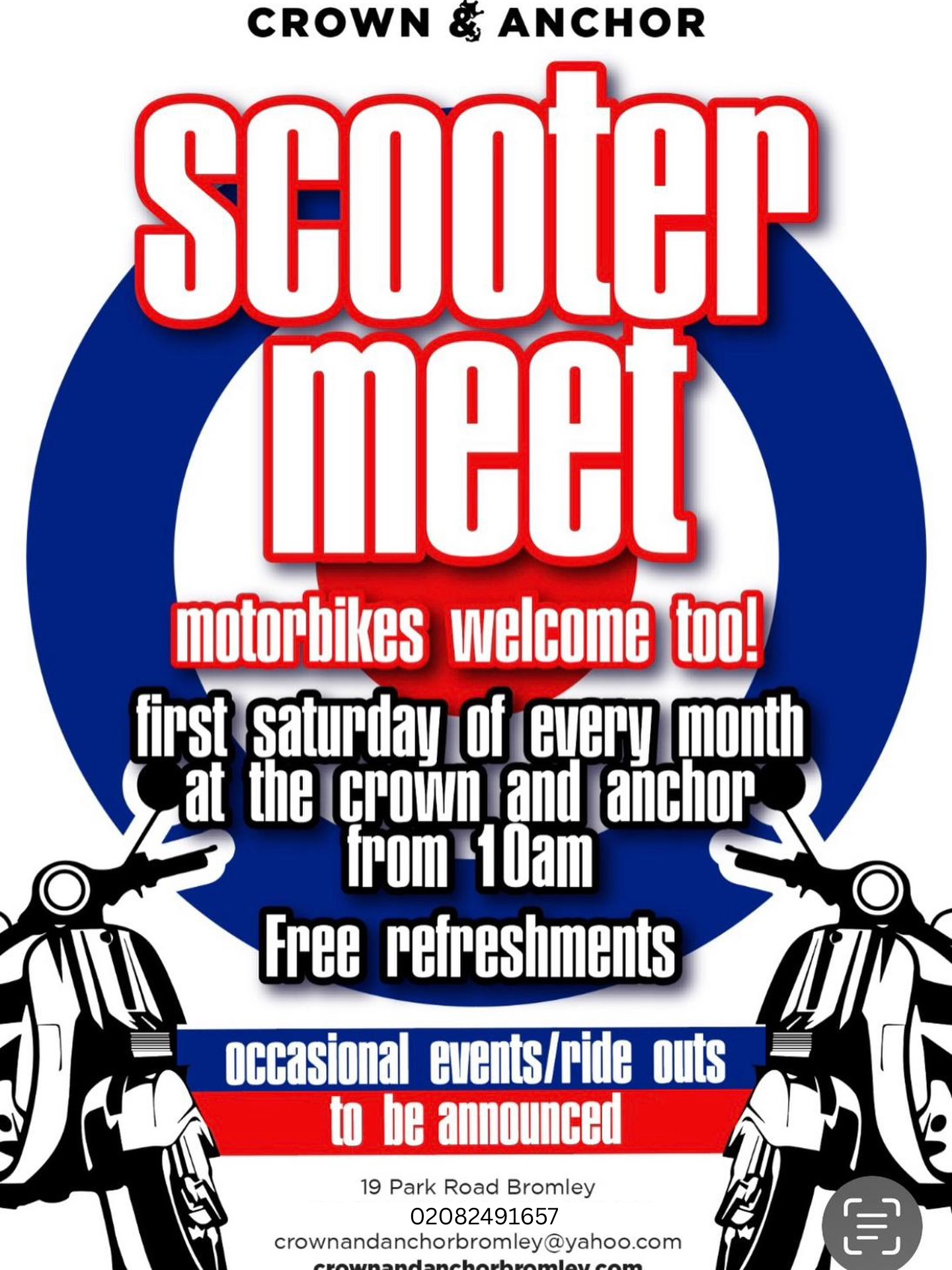7pmGet your groove on and welcome back the fantastic DJ Tracey Moss for an exciting evening of Northern Soul! FREE tea/coffee for all scooter riders!