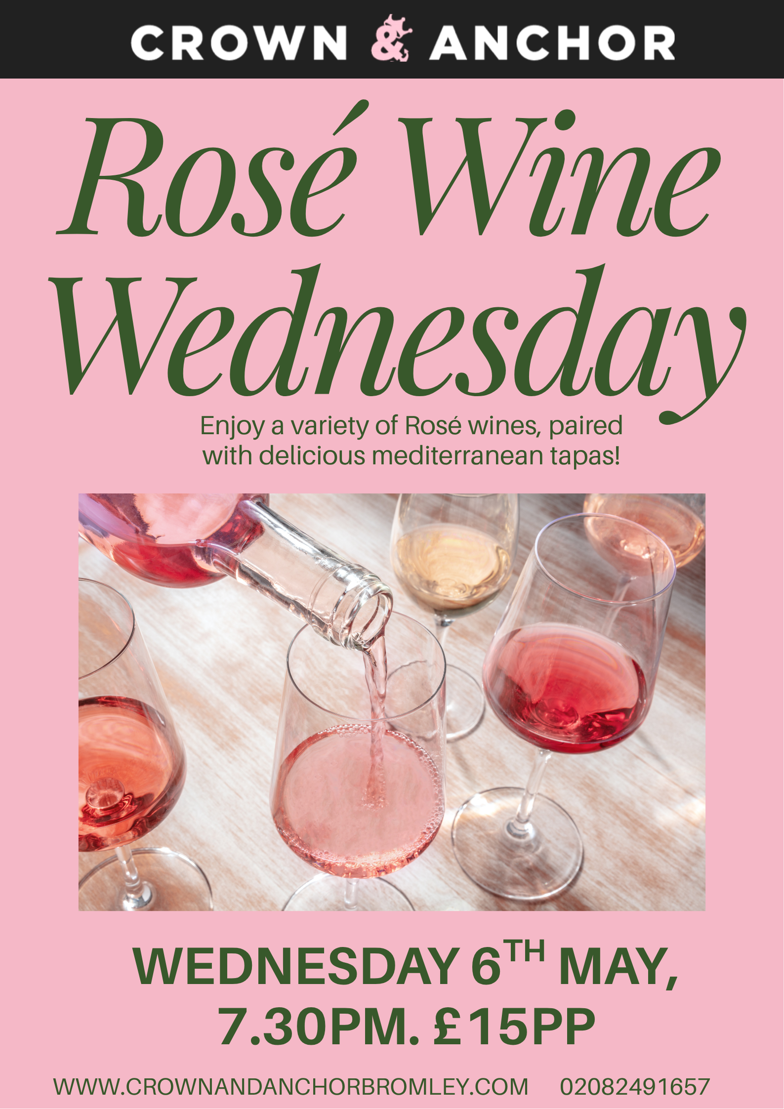 Enjoy a delicious array of Rosé wines, paired with tapas from The Med!