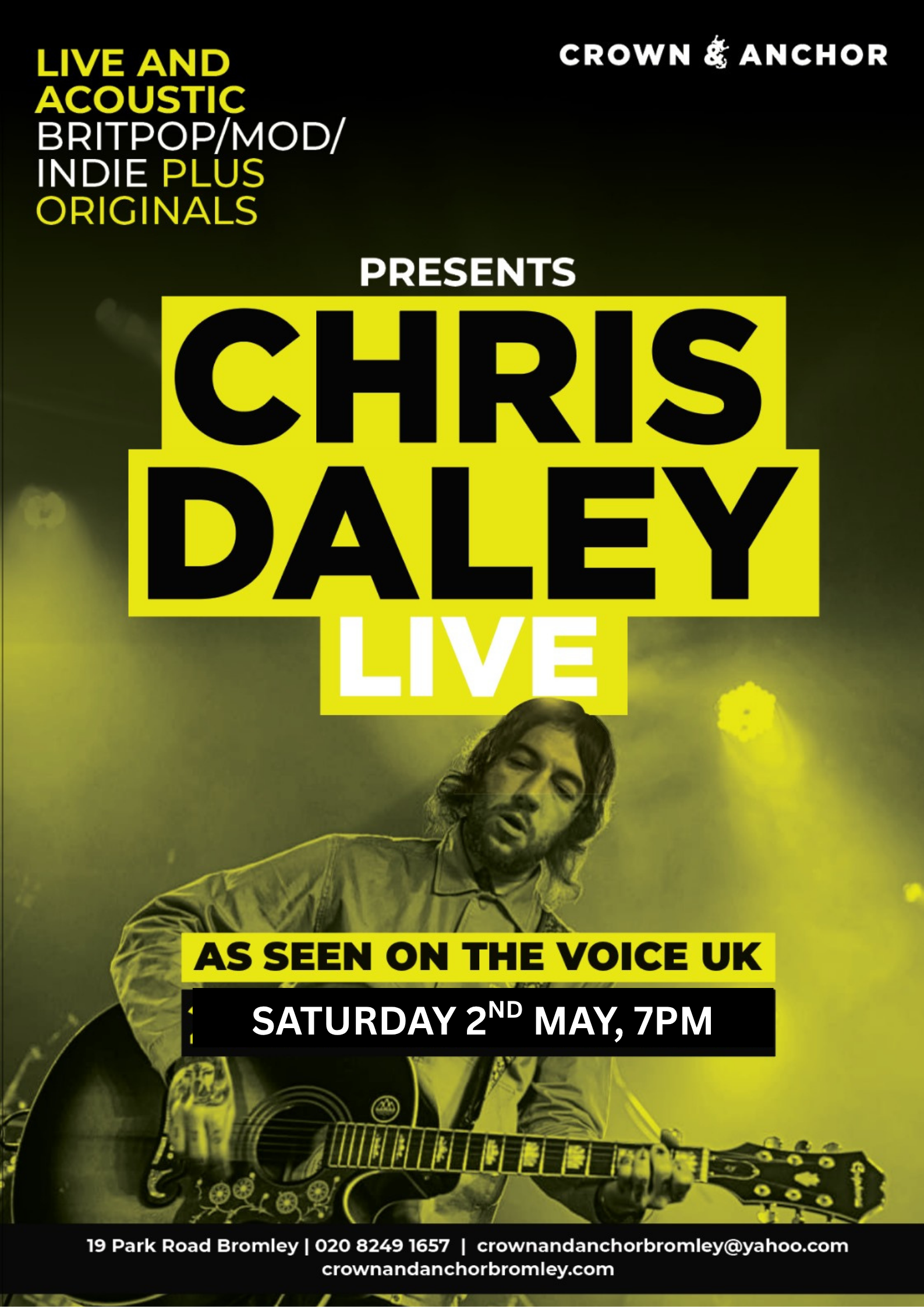 Straight from The Voice UK to The Crown & Anchor! Join us for a night of your favourite hits with Chris Daley!